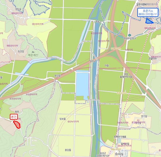 | -금왕읍행정복지센터북측근거리소재 -주위공장,주택,농경지,임야등혼재 -교통상황무난 -근거리간선도로및버스(정)등소재 -부정형완경사지 계획관리지역 배출시설설치제한지역 성장관리계획구역(2024-03-15)(산업형) 가축사육제한구역(2024-10-25)(일부제한구역) 제한보호구역(지원/헬기:2km) <가동> -일반철골구조판넬지붕 -북동측폭약3m내외도로접함 -건축법제2조제1항제11호나목에따른도로(도로일부포함) <나동> -경량철골구조판넬지붕 -건축법제2조제1항제11호나목에따른도로(도로일부포함) <63-1> -폭약3m내외도로로이용중 |
