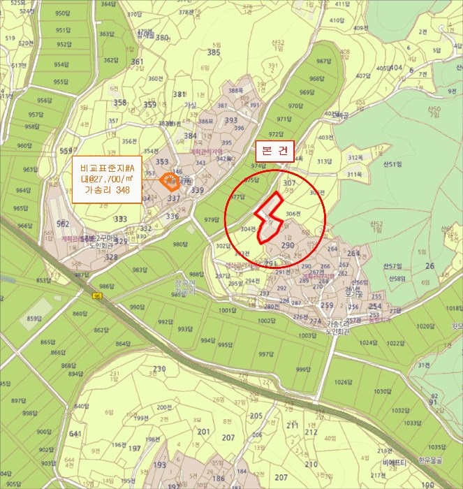| -철골조샌드위치판넬지붕 -가송2구마을회관동측인근 -주위농경지,임야,단독주택등혼재 -버스(정)인근,제반교통상황보통 -부정형완경사지 -북서측3m내외도로접함 계획관리지역 가축사육제한구역(일부제한구역(200m이내: 소(700㎡미만)) |
