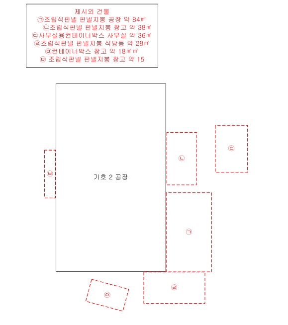 [169-5] * 공장용지 1322㎡ (399.9평) 표준공시(㎡) 102,000 결정가(㎡) 240,000 결정가(평) 793,392 * 건물 공장 493.5㎡ (149.28평) * 제시외 공장 84㎡ (25.41평),포함 창고 38㎡ (11.5평),포함 식당등 28㎡ (8.47평),포함 창고 15㎡ (4.54평),포함 사무실 36㎡ (10.89평),제외 창고 18㎡ (5.44평),제외 입찰외제시외인접지번소유추정소유자미상창고추정건물(169-7,-5지상)소재 [169-4] * 도로 전체: 391㎡ (118.28평) 130.2㎡ (39.39평) (391㎡중 130.203/391 이*현지분) 표준공시(㎡) 102,000 결정가(㎡) 80,000 결정가(평) 264,464 ............. 토지감정 327,696,000 건물감정 119,920,500 제시외 23,790,000 합계 471,406,500 |