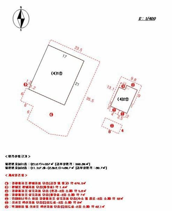 | -안흥초등교신진도분교남측인근 -주위단독주택,각종근린생화릿설,숙박시설등소재 -인근차량통행빈번한간선도로및버스(정)소재 -제반교통상황무난 -부정형평지 -정확한지적경계등확인위해측량요함 계획관리지역 상대보호구역(2016-06-30) 군용비행장소음대책구역제3종구역(소음대책제3종구역) 가축사육제한구역(전부제한지역(가축사육불가)) <79> -일반철골구조샌드위치판넬지붕 -동측도로접함 -1층공장:냉풍건조설비 -인접80번지상건물연결되어있는구조이나벽체등이용구분사용가능할것으로판단 -집합건축물대장(표제부,갑)상위반건축물(그밖의기재사항란신속민원처리과-81454(2022.12.27)따라위반건축물표시(453.85㎡무단증축(1층공장(창고)413.85㎡+1층공장(숙소)40㎡)으로건축법제11조위반시정명령기재) 절대보호구역(2016-06-30) <79-1> -동측도로접함 <79-2> 절대보호구역(2016-06-30) |
