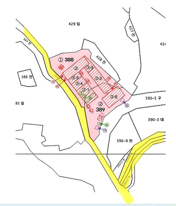 | -동이파출소남서측인근 -주위전,답등농경지,단독주택,소규모공장혼재 -남측인근평산길(왕복2차선)을통해옥천읍중심부및영동군등인근지역으로의이동이용이함 -시내버스(정)인근노변에소재 -제반교통사정보통 -2필일단의부정형평지 -남서측노폭약4m도로접함 -남측인근왕복2차선도로와연계됨 계획관리지역 배출시설설치제한지역 수질보전특별대책지역(2권역) 역사문화환경보존지역(이기윤망북비7구역) 성장관리계획구역(일반형) 가축사육제한구역(전부제한(모든가축사육제한구역)) <388> -경량철골조칼라강판지붕(현:판넬지붕) -기계기구의작동여부는불분명 -1995년10월28일최초사용승인후수차례증축되었으나건축물대장현황도상건물의위치가일치되지않거나누락된상태로건물의위치확인이불명확하여해당관청에문의하여확인바람 -인접지와경계가불분명하여별도의측량을요함 |