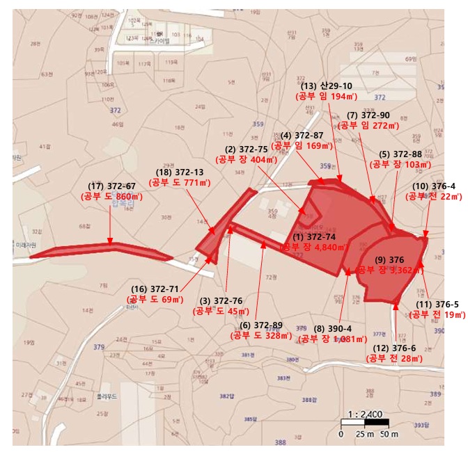 [372-74,372-75,372-88,376,390-4 주2] * 건물 1층 공장 1551.55㎡ (469.34평) 1층 창고,기계실 586.39㎡ (177.38평) 1층 차량통로 298.22㎡ (90.21평) 1층 사무실 228.771㎡ (69.2평) 2층 사무실 490.03㎡ (148.23평) 가동중단상태 * 기계 기계기구6식소재 [주1] * 건물 1층 공장 600㎡ (181.5평) 1층 공장 323.08㎡ (97.73평) 1층 공장 154㎡ (46.58평) 1층 공장 126㎡ (38.12평) 1층 공장 11.7㎡ (3.54평) 1층 공장 10.54㎡ (3.19평) 2층 공장 324.3㎡ (98.1평) 2층 공장 81.7㎡ (24.71평) 가동중단상태 * 제시외 분리수거장 8.25㎡ (2.5평),포함 비가림막 25㎡ (7.56평),포함 * 기타 수변전설비1식 지하수관정1식 [372-74] * 공장용지 4840㎡ (1464.1평) 표준공시(㎡) 126,900 결정가(㎡) 240,000 결정가(평) 793,392 [372-75] 404㎡ (122.21평) 표준공시(㎡) 126,900 결정가(㎡) 240,000 결정가(평) 793,392 [372-76] * 도로 45㎡ (13.61평) 표준공시(㎡) 126,900 결정가(㎡) 79,000 결정가(평) 261,158 [372-87] * 임야 169㎡ (51.12평) 현:도로 표준공시(㎡) 126,900 결정가(㎡) 79,000 결정가(평) 261,158 [372-88] * 공장용지 103㎡ (31.16평) 표준공시(㎡) 126,900 결정가(㎡) 240,000 결정가(평) 793,392 [372-89] * 도로 328㎡ (99.22평) 표준공시(㎡) 126,900 결정가(㎡) 79,000 결정가(평) 261,158 [372-90] * 임야 272㎡ (82.28평) 현:도로 표준공시(㎡) 126,900 결정가(㎡) 79,000 결정가(평) 261,158 [390-4] * 공장용지 1081㎡ (327평) 표준공시(㎡) 126,900 결정가(㎡) 240,000 결정가(평) 793,392 * 제시외 비가림막 3㎡ (0.91평),포함 [376] * 공장용지 3362㎡ (1017평) 표준공시(㎡) 126,900 결정가(㎡) 240,000 결정가(평) 793,392 [376-4] * 전 22㎡ (6.65평) 현:도로 표준공시(㎡) 126,900 결정가(㎡) 79,000 결정가(평) 261,158 [376-5] 19㎡ (5.75평) 현:도로 표준공시(㎡) 126,900 결정가(㎡) 79,000 결정가(평) 261,158 [376-6] 28㎡ (8.47평) 현:도로 표준공시(㎡) 126,900 결정가(㎡) 79,000 결정가(평) 261,158 [산29-10] * 임야 194㎡ (58.68평) 현:도로 표준공시(㎡) 126,900 결정가(㎡) 79,000 결정가(평) 261,158 [372-71] * 도로 전체: 69㎡ (20.87평) 11.5㎡ (3.48평) (69㎡중 1/6 에*바이오플라스틱코리아(주)지분) 표준공시(㎡) 126,900 결정가(㎡) 79,000 결정가(평) 261,158 [372-67] 전체: 860㎡ (260.15평) 172.1㎡ (52.06평) (860㎡중 1721/8600 에*바이오플라스틱코리아(주)지분) 표준공시(㎡) 126,900 결정가(㎡) 79,000 결정가(평) 261,158 [372-13] 전체: 771㎡ (233.23평) 265.5㎡ (80.31평) (771㎡중 177/514 에*바이오플라스틱코리아(주)지분) 표준공시(㎡) 126,900 결정가(㎡) 79,000 결정가(평) 261,158 ........... 토지감정 2,470,161,900 건물감정 3,329,960,545 제시외 3,630,000 기계감정 2,454,900,000 기타 211,500,000 합계 8,470,152,445 보존등기 2017-08-28 |