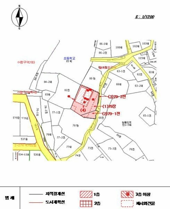 | -안흥초등교신진도분교남측인근 -주위단독주택,각종근린생화릿설,숙박시설등소재 -인근차량통행빈번한간선도로및버스(정)소재 -제반교통상황무난 -부정형평지 -정확한지적경계등확인위해측량요함 계획관리지역 상대보호구역(2016-06-30) 군용비행장소음대책구역제3종구역(소음대책제3종구역) 가축사육제한구역(전부제한지역(가축사육불가)) <79> -일반철골구조샌드위치판넬지붕 -동측도로접함 -1층공장:냉풍건조설비 -인접80번지상건물연결되어있는구조이나벽체등이용구분사용가능할것으로판단 -집합건축물대장(표제부,갑)상위반건축물(그밖의기재사항란신속민원처리과-81454(2022.12.27)따라위반건축물표시(453.85㎡무단증축(1층공장(창고)413.85㎡+1층공장(숙소)40㎡)으로건축법제11조위반시정명령기재) 절대보호구역(2016-06-30) <79-1> -동측도로접함 <79-2> 절대보호구역(2016-06-30) |