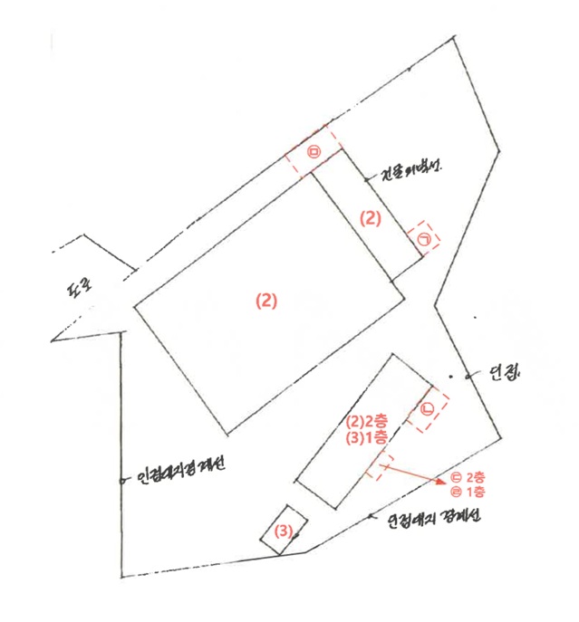 | -증평도안농공단지서측인근 -주위주택,공장,농경지등소재 -인근에간선도로통과 -제반교통사정무난 -부정형토지 계획관리지역 가축사육제한구역(300M이내소,말(900㎡미만신고대상),사슴,양(염소,산양)사육제한지역) <134-5> -경량철골조(조립식)기성제품조립식판넬지붕 -134-5,-7의통행을위한인접필지인134-6번지는타인(소유자박둘자)의소유로확인되는바입찰시참고요망 -2층은134-5번지1호의2층에소재하는바참고요망 -서측노폭약4m내외의진입로인134-7번지의일부와접함 <1호> -시멘트블록조슬래브지붕 <134-7> -서측노폭약4m내외도로인134-6번지(타인소유)를통하여진출입하고있으며본건의일부가134-5의진출입을위한진입로임 |