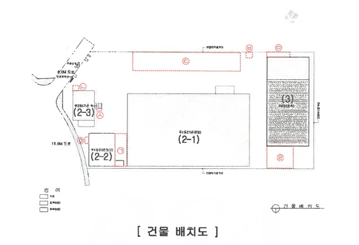 | -논산제2일반산업단지내위치 -주위산업단지내중.소규모공장소재한공장지대 -세장형평지 -북측,동측각각15m,6m도로접함 -소로3류(폭8m미만)(접합) -중로2류(폭15m~20m)(접합) -일반산업단지(논산2) *1차감정:5,671,359,800 일반공업지역 제1종지구단위계획구역 가축사육제한구역(2025-07-11)(모든축종제한) <주1동> -일반철골조샌드위치판넬지붕 <주건축물 2동> -일반철골조이피에스판넬지붕 |