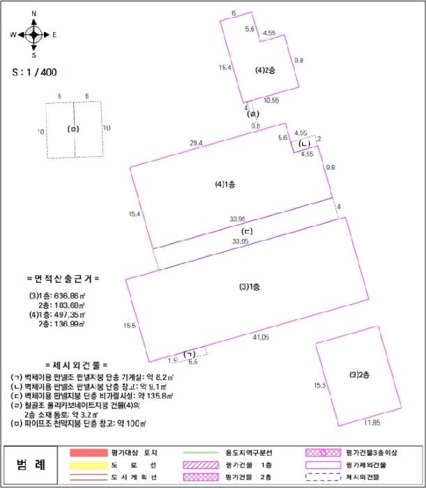 [주건축물 1동] 1674㎡ (506.38평) 표준공시(㎡) 141,100 결정가(㎡) 242,000 결정가(평) 800,004 * 건물 1층 공장,휴게실,창고 636.86㎡ (192.65평) 2층 공장(사무실) 183.68㎡ (55.56평) * 제시외 기계실 8.2㎡ (2.48평),포함 창고 9.1㎡ (2.75평),포함 비가림시설 135.8㎡ (41.08평),포함 2층 통로 3.2㎡ (0.97평),포함 창고 100㎡ (30.25평),포함 521-1,-3지상 ,포함 * 기계 기계기구10식소재 [2동] * 건물 1층 공장,창고,휴게실 497.35㎡ (150.45평) 2층 공장(사무실) 136.99㎡ (41.44평) [521-1] * 공장용지 1652㎡ (499.73평) 표준공시(㎡) 141,100 결정가(㎡) 242,000 결정가(평) 800,004 ........... 토지감정 804,892,000 건물감정 1,238,819,260 제시외 13,264,000 기계감정 25,131,000 합계 2,082,106,260 보존등기 2020-04-21 |