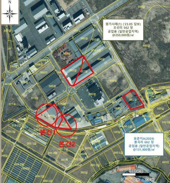 | -오선일반산업단지내위치 -인근공장,공업나지,농촌마을,농경지등형성 -노선버스(정)인근소재 -대중교통사정다소불편시됨 -2필일단의부정형등고평탄지 -북서측왕복2차선도로접함 <667 가동호> -일반철골구조판넬지붕 -봉곡리667은오선리580으로행정관할구역및지번변경 <나동호> -일반철골구조판넬지붕 -봉곡리667은오선리580으로행정관할구역및지번변경 <오선리 575> -중로2류(폭15m~20m)(2017-08-04)(중(집)2-3)(접합) -일반산업단지(산업단지) 도시지역(경계) 일반공업지역 지구단위계획구역 가축사육제한구역(2025-05-30)(절대제한구역) 농업진흥구역 <오선리 580> -일반산업단지(산업단지) 도시지역(경계) 일반공업지역 지구단위계획구역 가축사육제한구역(2025-05-30)(절대제한구역) |