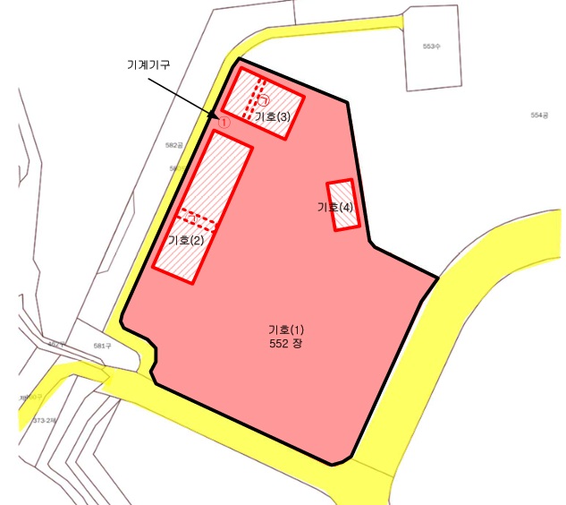 [1동] * 공장용지 10713.4㎡ (3240.8평) 표준공시(㎡) 47,000 결정가(㎡) 83,000 결정가(평) 274,381 * 건물 공장 781.5㎡ (236.4평) * 기계 오버헤드크레인2식소재 수변전설비1식소재 [2동] * 건물 공장 336㎡ (101.64평) [3동] 1층 사무소 123.33㎡ (37.31평) 2층 사무소 120㎡ (36.3평) .......... 토지감정 889,212,200 건물감정 1,367,355,300 기계감정 40,000,000 기타 35,000,000 합계 2,331,567,500 보존등기 2021-03-17 |
