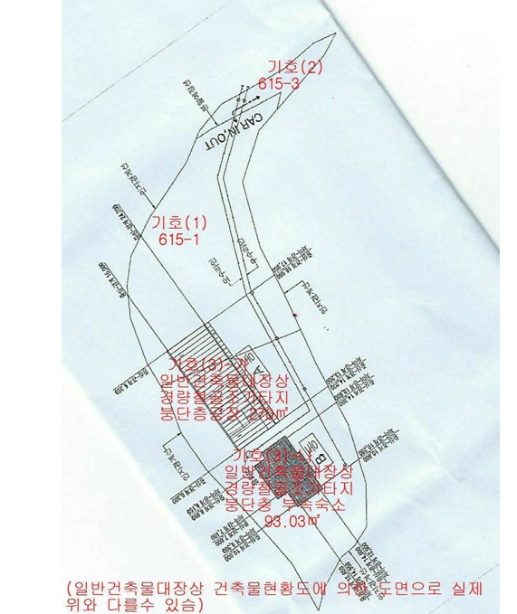 [615-1,615-2] * 건물 공장 270㎡ (81.68평) 부속숙소 93.03㎡ (28.14평) 방:3,욕실2 * 기계 기계기구3기소재 [615-1] * 공장용지 2782㎡ (841.56평) 표준공시(㎡) 92,800 결정가(㎡) 156,000 결정가(평) 515,705 * 제시외 창고 120㎡ (36.3평),포함 창고등 92㎡ (27.83평),포함 창고 78㎡ (23.6평),포함 다용도실 10㎡ (3.02평),포함 보일러실 4.5㎡ (1.36평),포함 창고외 82㎡ (24.8평),포함 건조실 16.5㎡ (4.99평),포함 솥보호소 1.5㎡ (0.45평),포함 숙소부속거실 23㎡ (6.96평),포함 견사 14㎡ (4.23평),제외 휴식실등 12㎡ (3.63평),제외 용도미상 15㎡ (4.54평),제외 계사 24㎡ (7.26평),제외 수목,수전등포함 [615-3] * 답 134㎡ (40.53평) 현:공장진입로(콘크리트바닥) 표준공시(㎡) 92,800 결정가(㎡) 51,000 결정가(평) 168,596 ......... 토지감정 440,826,000 건물감정 206,178,600 제시외 91,540,000 기계감정 4,797,000 합계 743,341,600 보존등기 2010-11-03 |