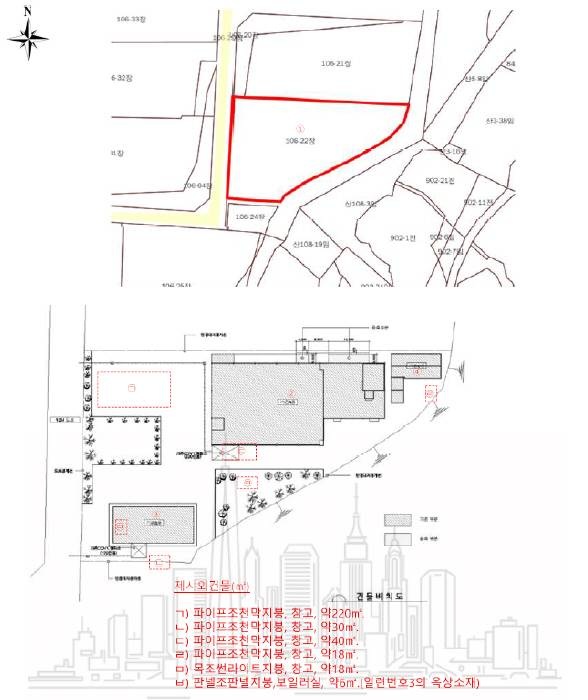 | -합덕농공단지내소재 -주위중소규모공장등혼재한농공단지 -버스(정)인근,제반교통상황보통 -사다리형완경사지 -서측약8m내외도로접함 -정확한지적관련사항확인필요한경우측량등통한재확인필요 -농공단지 계획관리지역 산업시설구역 산업ㆍ유통개발진흥지구 지구단위계획구역 가축사육제한구역(2024-12-12)(일부제한모든축종제한) <에이동> -철콘조및철골조강파이프구조기타지붕 -클린룸설비및집진설비 -화물용승강기설비 <비동> -철콘조슬래브지붕 <씨동> -철골조슬래브지붕 |