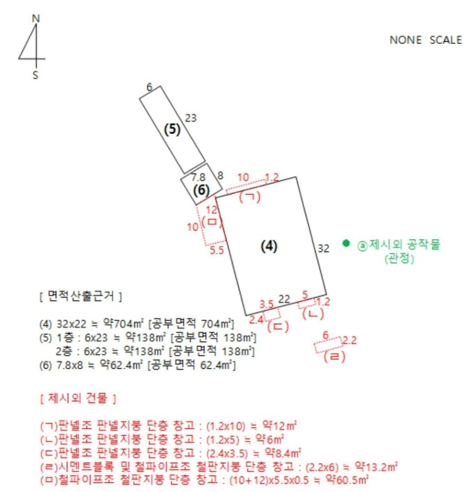 [가동] * 공장용지 2843㎡ (860.01평) 표준공시(㎡) 216,200 결정가(㎡) 312,000 결정가(평) 1,031,410 * 건물 공장 704㎡ (212.96평),* 제시외 창고 12㎡ (3.63평),포함 창고 6㎡ (1.82평),포함 창고 8.4㎡ (2.54평),포함 창고 13.2㎡ (3.99평),포함 창고 60.5㎡ (18.3평),포함 * 기계 기계기구4식소재 관정1식소재 관정소재 [나동] * 건물 1층 사무실,식당,화장실 138㎡ (41.74평) 2층 실험실,기숙사 138㎡ (41.74평) [다동] 저온창고 62.4㎡ (18.88평) [356-1] * 묘지 447㎡ (135.22평) 맹지 현:전(야적장) 표준공시(㎡) 66,300 결정가(㎡) 197,000 결정가(평) 651,243 [356-5] 231㎡ (69.88평) 맹지 현:전(휴경지) 표준공시(㎡) 66,300 결정가(㎡) 155,000 결정가(평) 512,399 ........... 토지감정 1,010,880,000 건물감정 271,288,800 제시외 7,405,500 기계감정 46,480,000 기타 12,000,000 합계 1,348,054,300 |