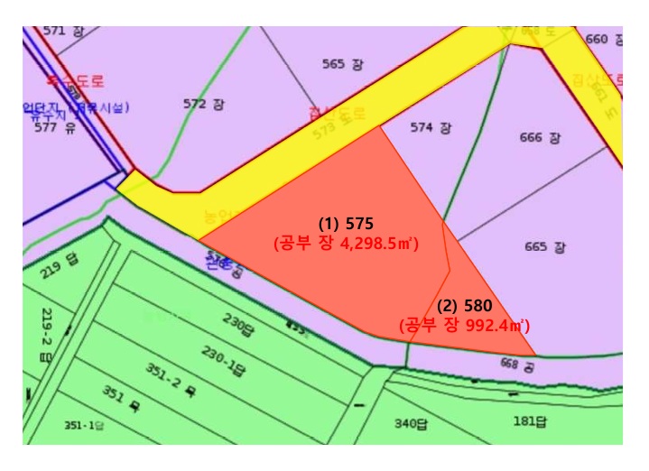 | -오선일반산업단지내위치 -인근공장,공업나지,농촌마을,농경지등형성 -노선버스(정)인근소재 -대중교통사정다소불편시됨 -2필일단의부정형등고평탄지 -북서측왕복2차선도로접함 <667 가동호> -일반철골구조판넬지붕 -봉곡리667은오선리580으로행정관할구역및지번변경 <나동호> -일반철골구조판넬지붕 -봉곡리667은오선리580으로행정관할구역및지번변경 <오선리 575> -중로2류(폭15m~20m)(2017-08-04)(중(집)2-3)(접합) -일반산업단지(산업단지) 도시지역(경계) 일반공업지역 지구단위계획구역 가축사육제한구역(2025-05-30)(절대제한구역) 농업진흥구역 <오선리 580> -일반산업단지(산업단지) 도시지역(경계) 일반공업지역 지구단위계획구역 가축사육제한구역(2025-05-30)(절대제한구역) |